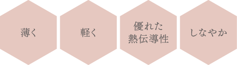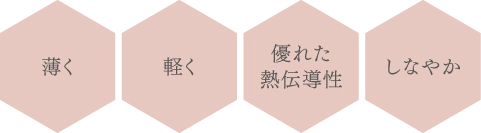 銀や銅より熱伝導性に優れ、遠赤外線をよく放射し、素早く温めます。2000年代に誕生し、発明者がノーベル物理学賞を受賞した先進素材です。