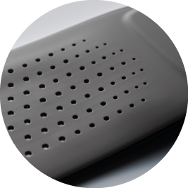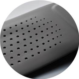 極薄の発熱体グラフェンを覆うカバーには、安全性の高いシリコンを採用。計算されたデザイン設計でボディに添いやすく、フィット性を高めました。また、肌になじみよく、拭くだけでお手入れができ衛生的です。まるで着けていることを忘れるほどの軽やかさと優しい肌触りで、家事や通勤・通学時など普段どおりに活動できます。