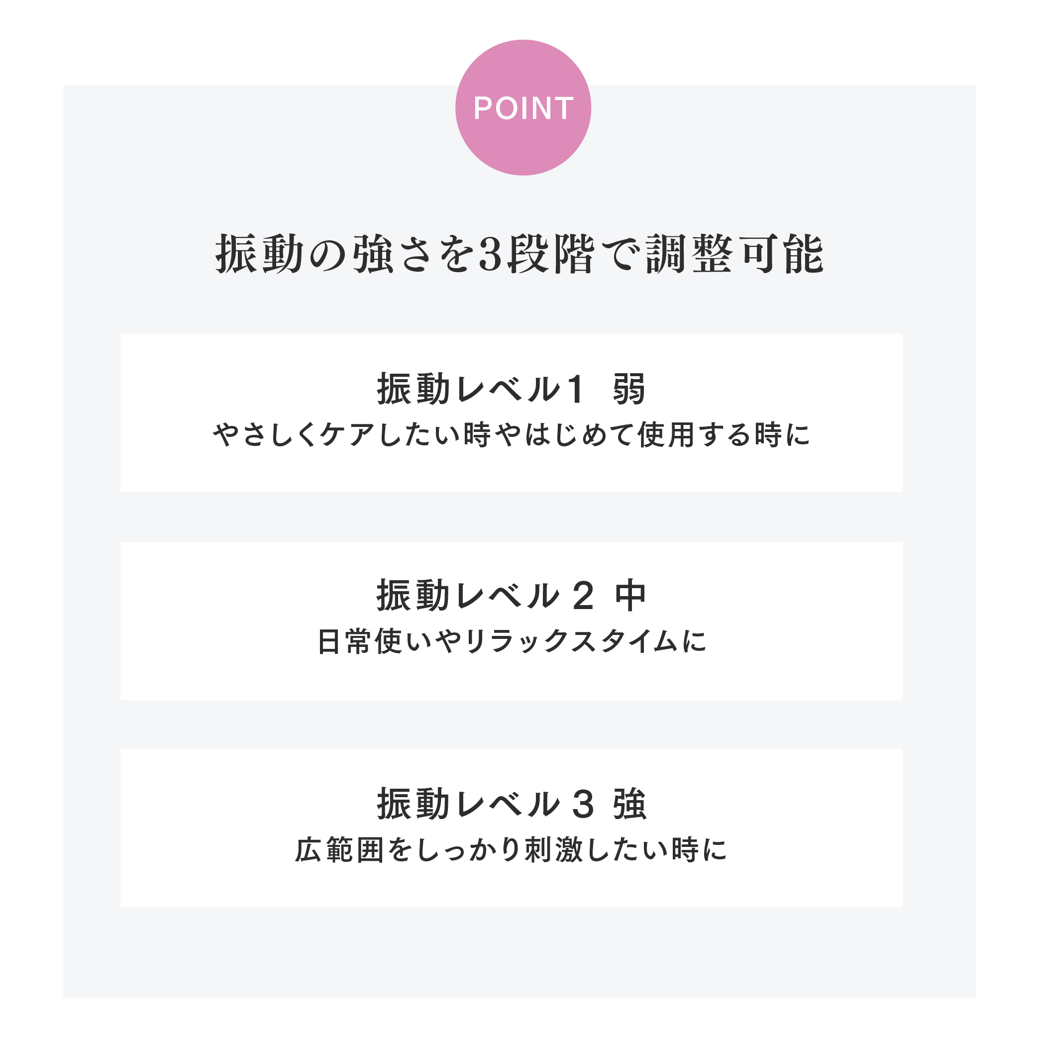 - 振動レベル2 中日常使いやリラックスタイムに