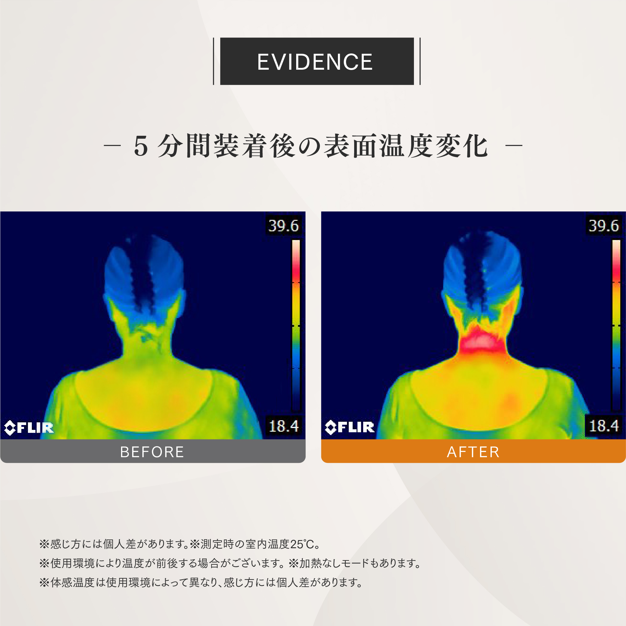 ※感じ方には個人差があります。※測定時の室内温度25℃。
