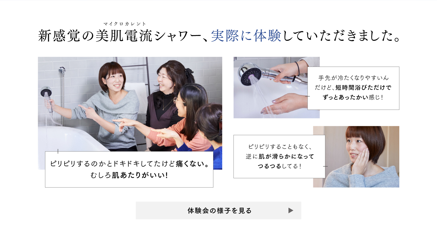 シャワーって1日の疲れや汚れなどを洗い落とす時間だと思っていましたが、それが美容の時間になるっていうのは素晴らしいし、驚きました。シャワーからマイクロカレントが出てくることによって、自分をケアする時間になるっていうのはすごいことだと思いますし、皆さんも継続できるのではと思っています。