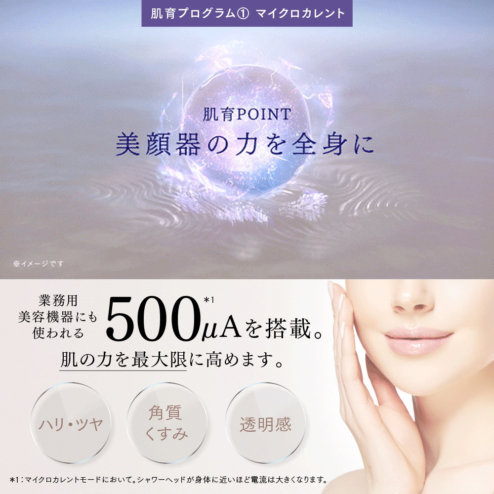 ※マイクロカレントモード使用時。※シャワーヘッドを手に持って使用した場合にのみマイクロカレントが発生します。