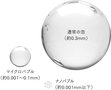 ナノバブルとは、サイズが基準値0.001mm未満の気泡のこと。
