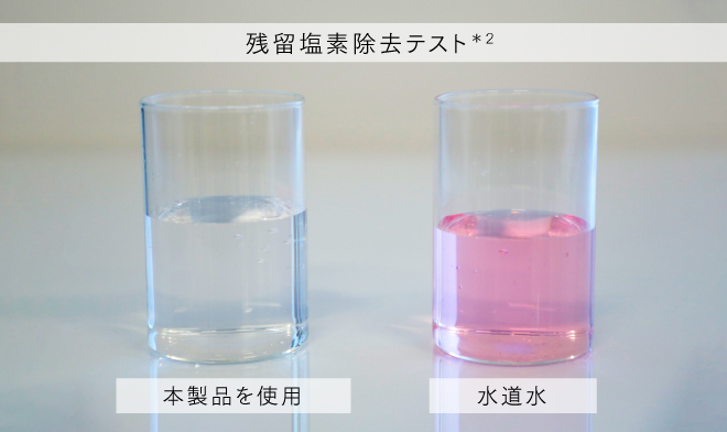 ヘッドに浄水カートリッジを取り付けるだけで塩素を98.5%除去。