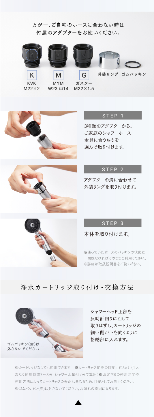 クリアなシャワーがお肌や髪へ優しく降り注ぎます。