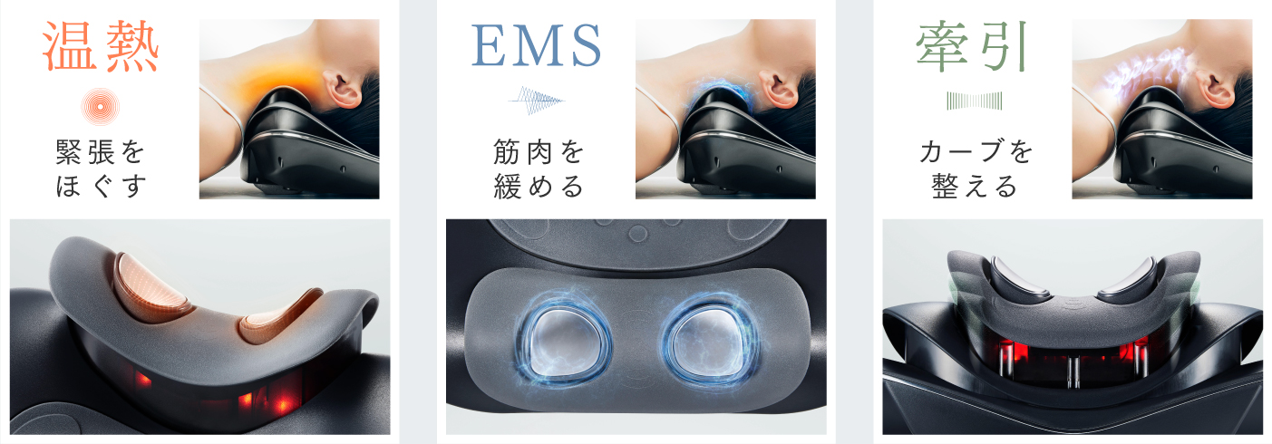 首の緊張をほぐすことで、EMSと牽引機能による首ケアの質が高まります。