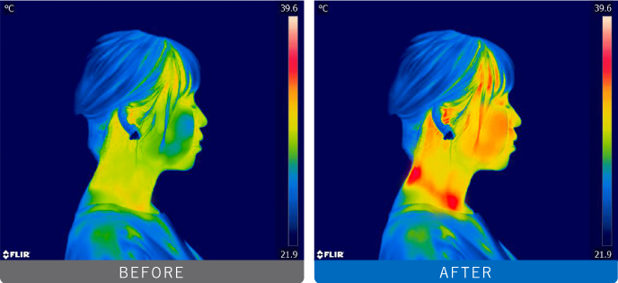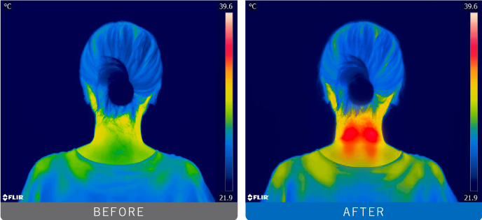 4つの加熱パッドにより、首まわりを広範囲に温めることが可能。首後方に加え、首側面を温めることによって、首まわりの筋肉に働きかけます。