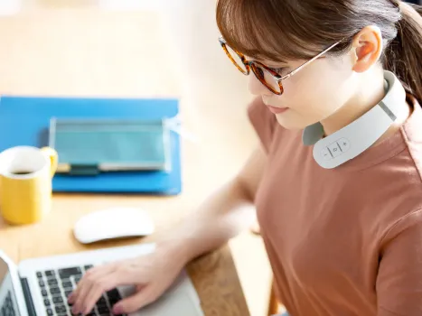 手を止めて使うものって思っていたから、忙しい日々のなか、なかなか使う気になれませんでした。EMS HEAT NECKは仕事しながら使えるから、とにかく気軽ですね。朝夕のデスクワークのお供として使いながら、毎日癒されています。