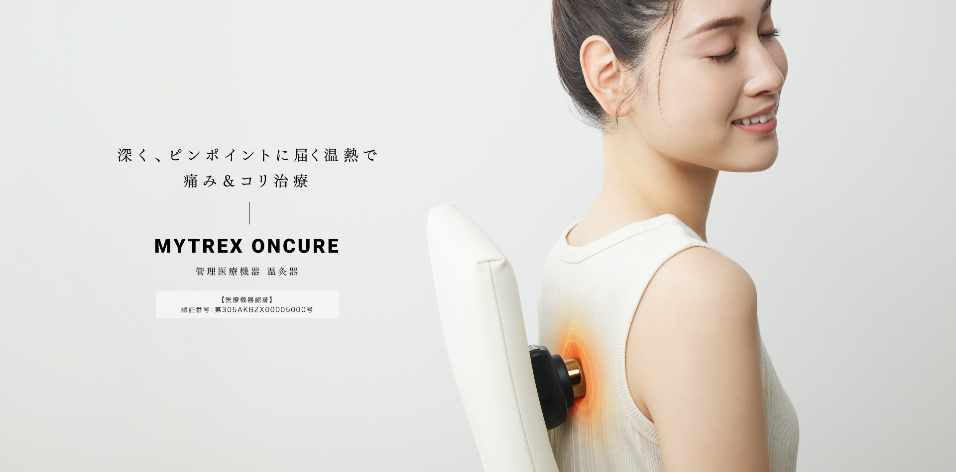 「お灸」の力を日常に。いつでもどこでも、好きな場所で使える温灸器。MYTREXの特許技術※で温めながらほぐすから筋肉の緊張を緩和。温熱が筋肉の奥深くまで刺激します。自分好みのチカラで刺激可能で全身のコリをマルチカバー。持ち運びもできる手のひらサイズで、移動中はもちろん、仕事中や家事の合間にもご使用できます。