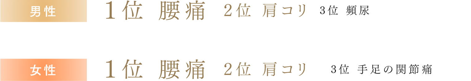 腰痛や肩コリは現代病とも呼ばれ、国民生活基礎調査の「体の不調ランキング」で男女ともに1,2位にあがっています。「ONCURE」は血行不良からくるコリや筋肉の痛みをピンポイントに狙って血行を促進し、コリや痛みを治療します。