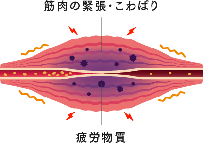 筋肉が硬くなり、血管を圧迫。血行不良にになると、脳がコリを認識。