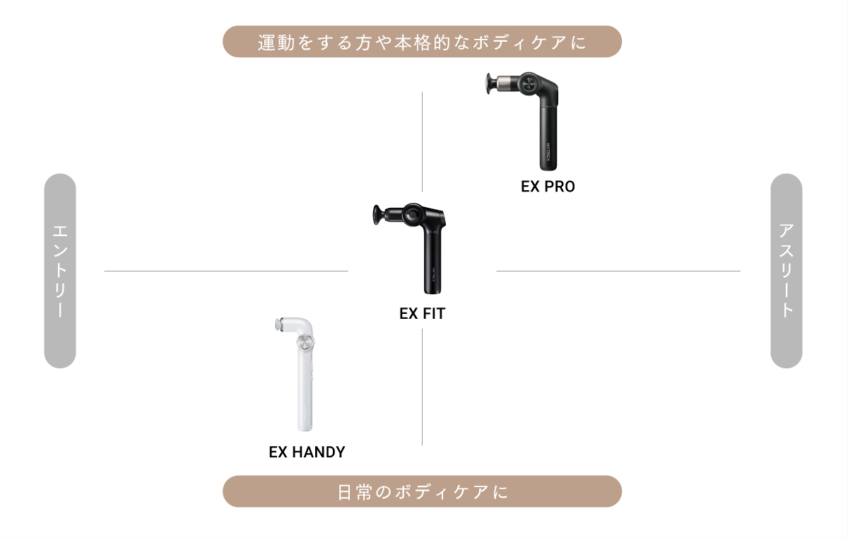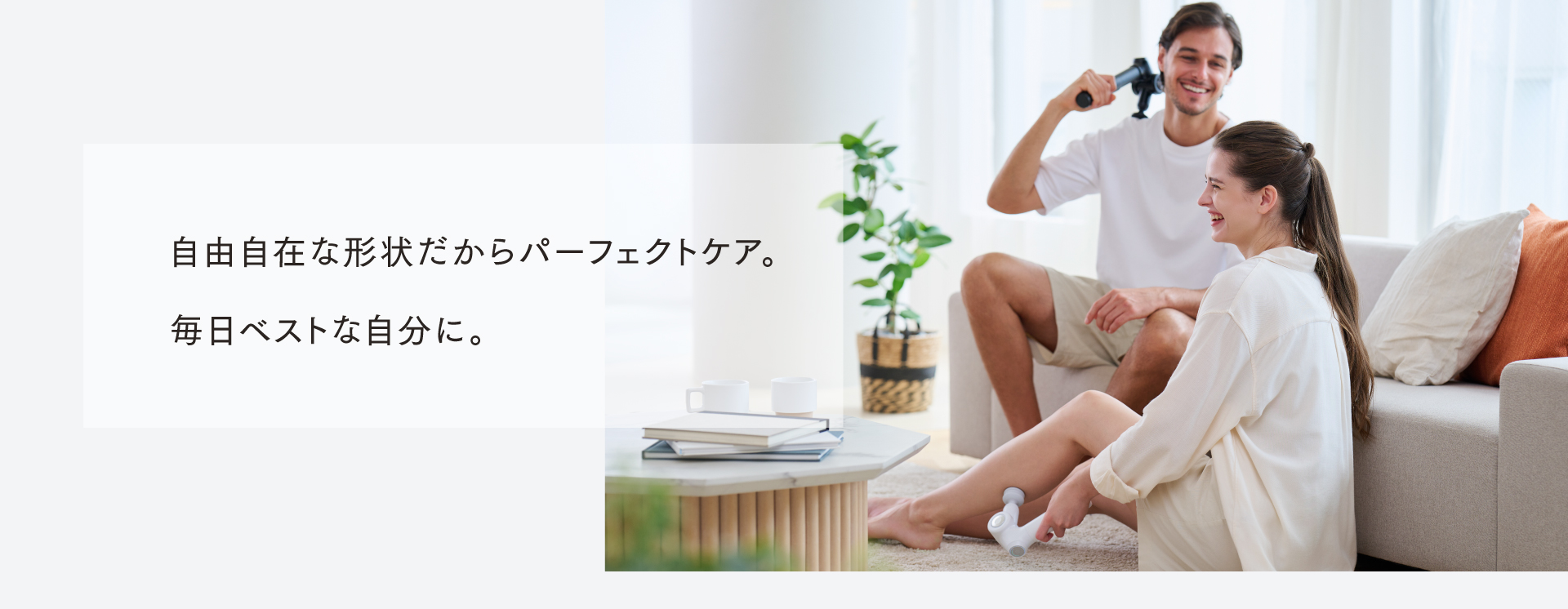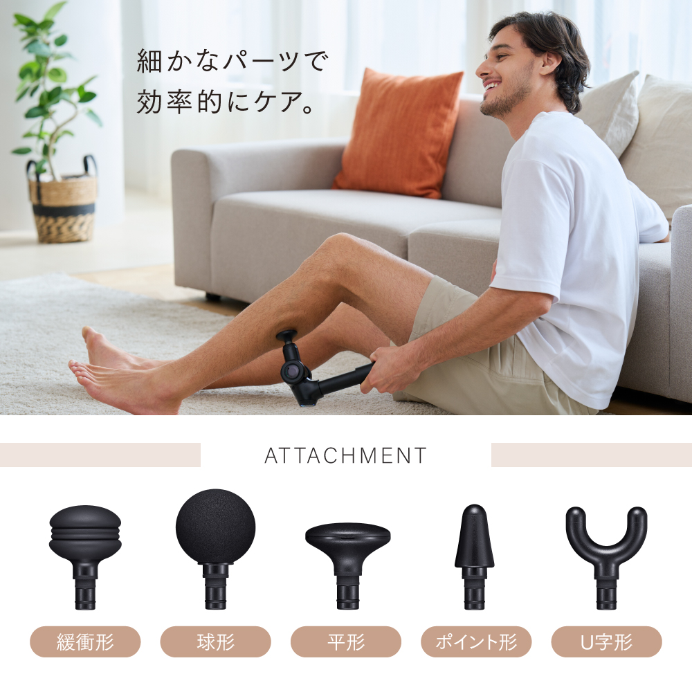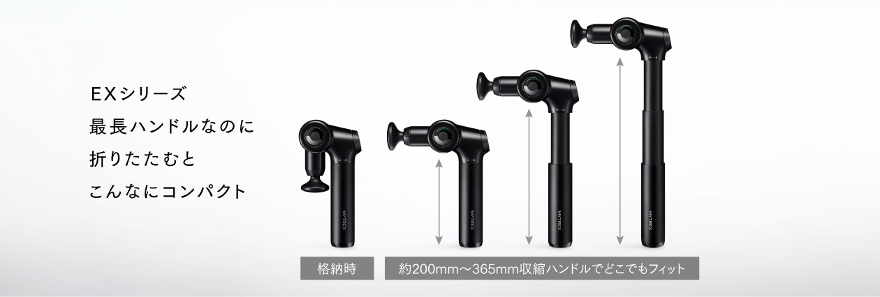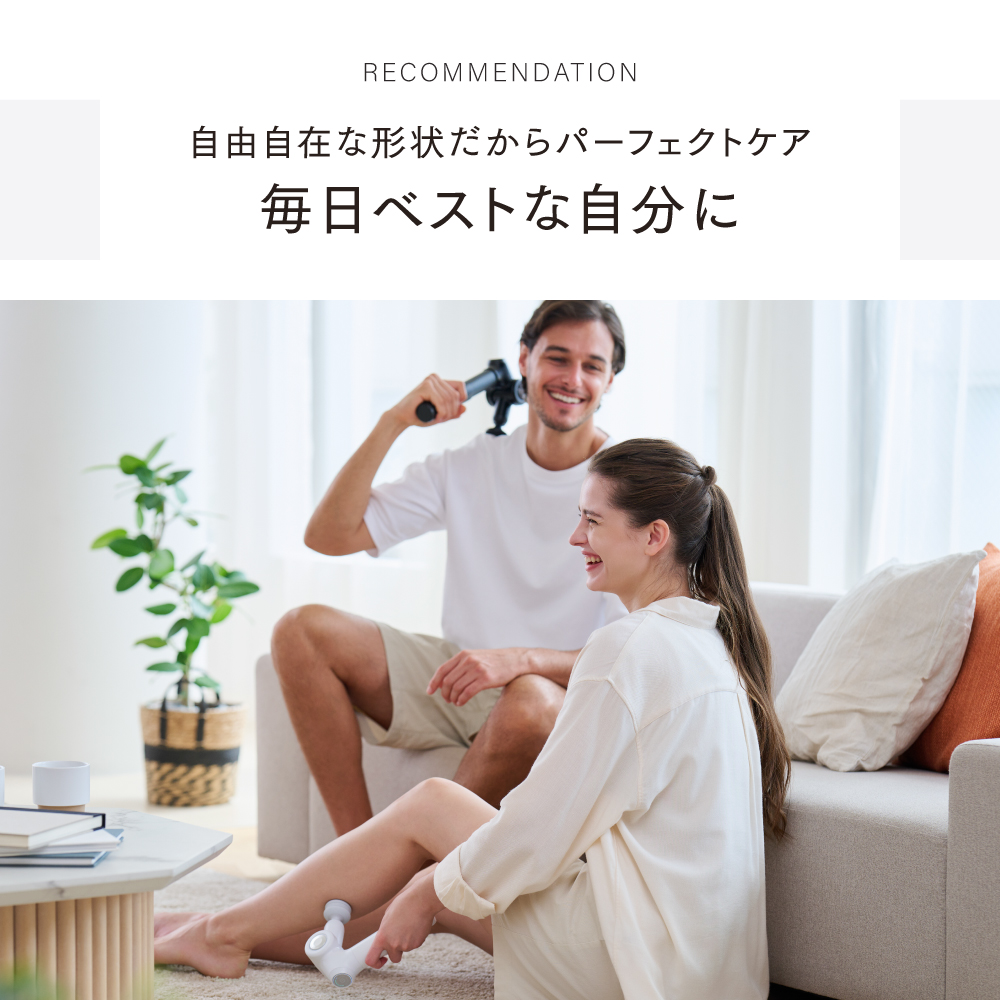 「REBIVE EX」シリーズから日々のボディケア専用に進化した「REBIVE EX FIT」が誕生。シリーズ最長約365mmの伸縮ハンドルと4段階に調整可能なアームを備えたハンディガンなので、1人ではケアしづらい背中や腰も簡単フィット。自由自在な形状でデスクワークや運動不足で固まりがちな背中にも最適。日々のケアに寄り添ったボディケアを叶えます。