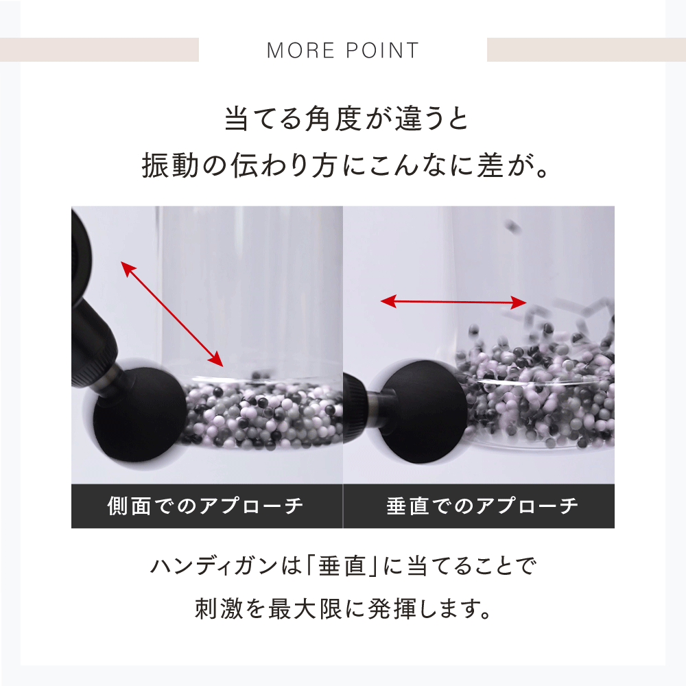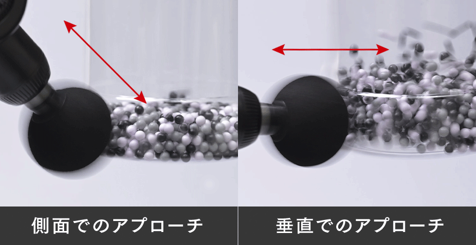 一般的なハンディガンの振幅4mm程度に比べて約2倍もの8mmストロークで強い打撃感を実現。筋肉量の多い方にもおすすめです。