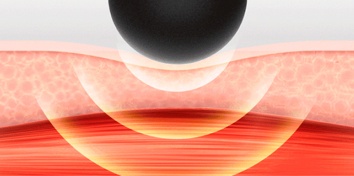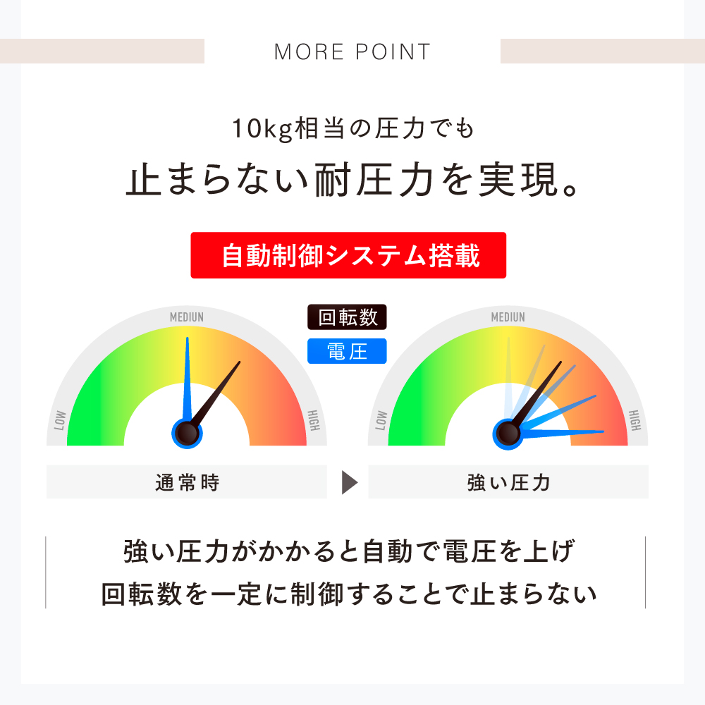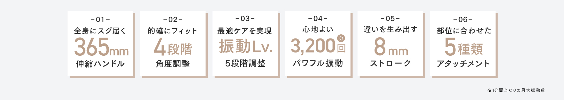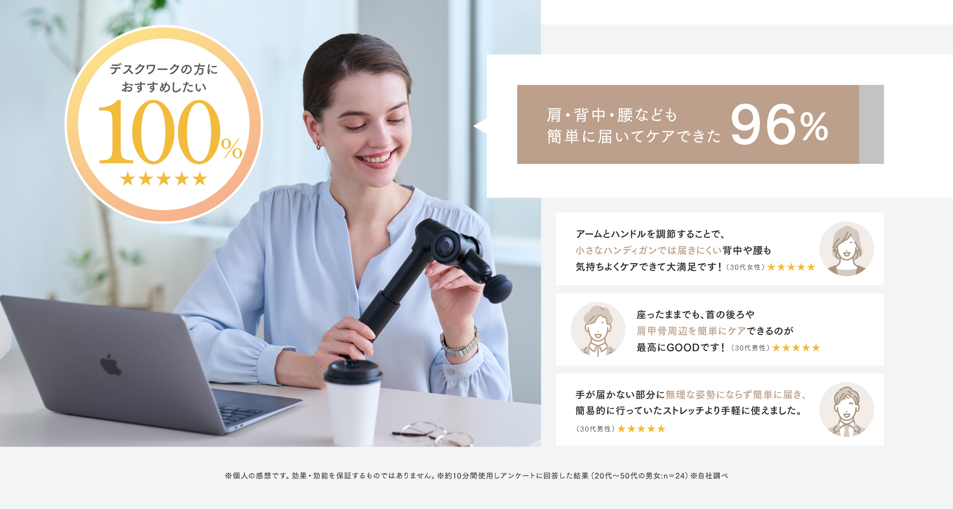 約490gの重みで押さえつけずに軽く当てるだけ。心地よい振動が深くまで届きます。