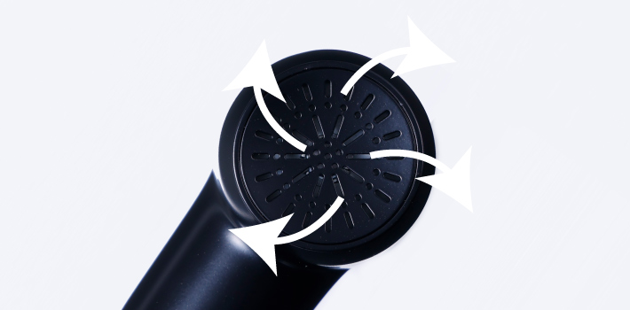 小型のハンディガンは、熱がうまく逃せずに本体が熱くなりがちに。独自構造により、本体使用時の熱を効果的に放出し安全性を高めました。