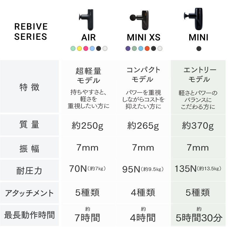 外出先での使用がメイン、軽さを重視される方には、REBIVE MINIXSもおすすめです。