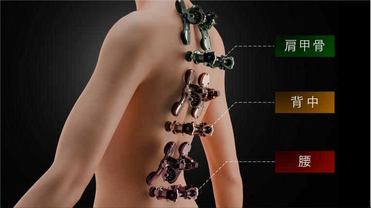 肩甲骨から腰まで、自動でくまなくマッサージ。