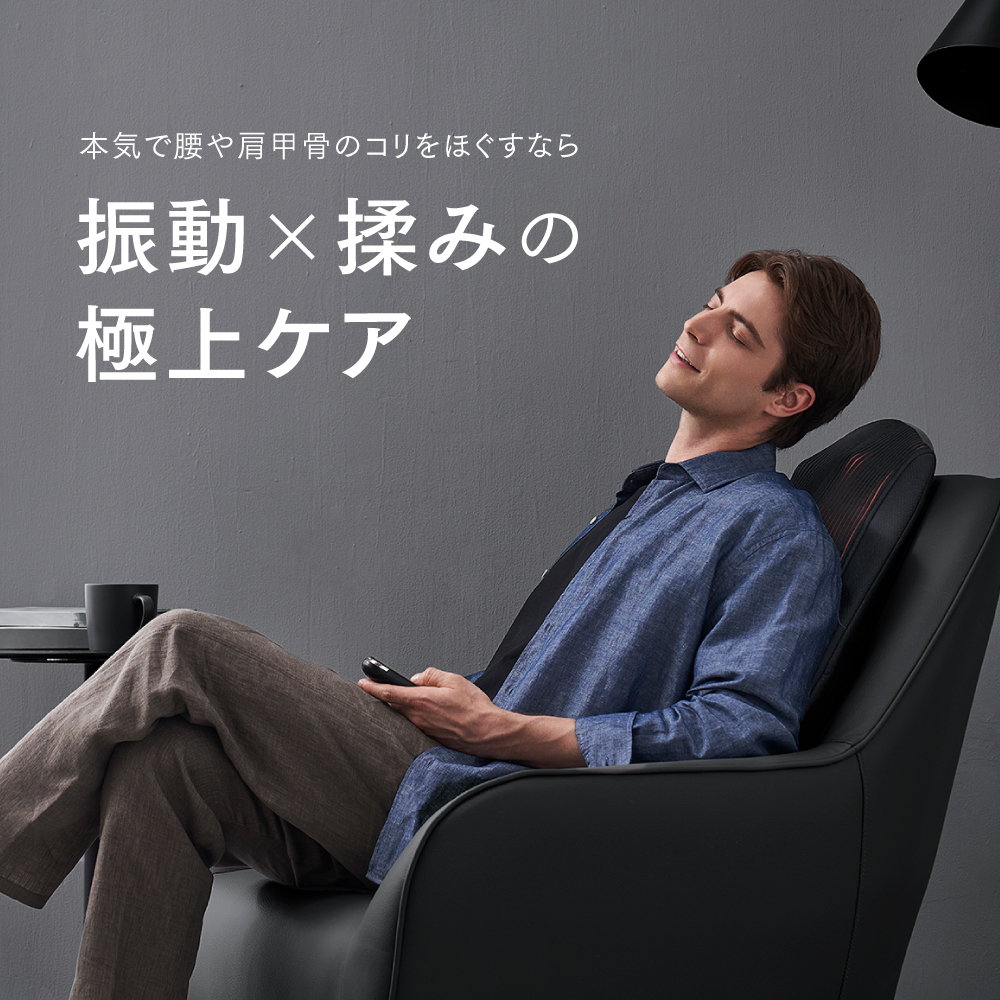 マッサージガンならではの“圧倒的爽快感”と、凝り固まった筋肉を瞬時に深くまでほぐす“振動体感”を実現。短時間当てるだけで、つらい腰や背中、肩甲骨に真の解放感を叶えます。デスクワークが多い方や、従来のシートマッサージャーでは物足りなかった方にもおすすめ。ありそうでなかった新感覚のマッサージガンです。