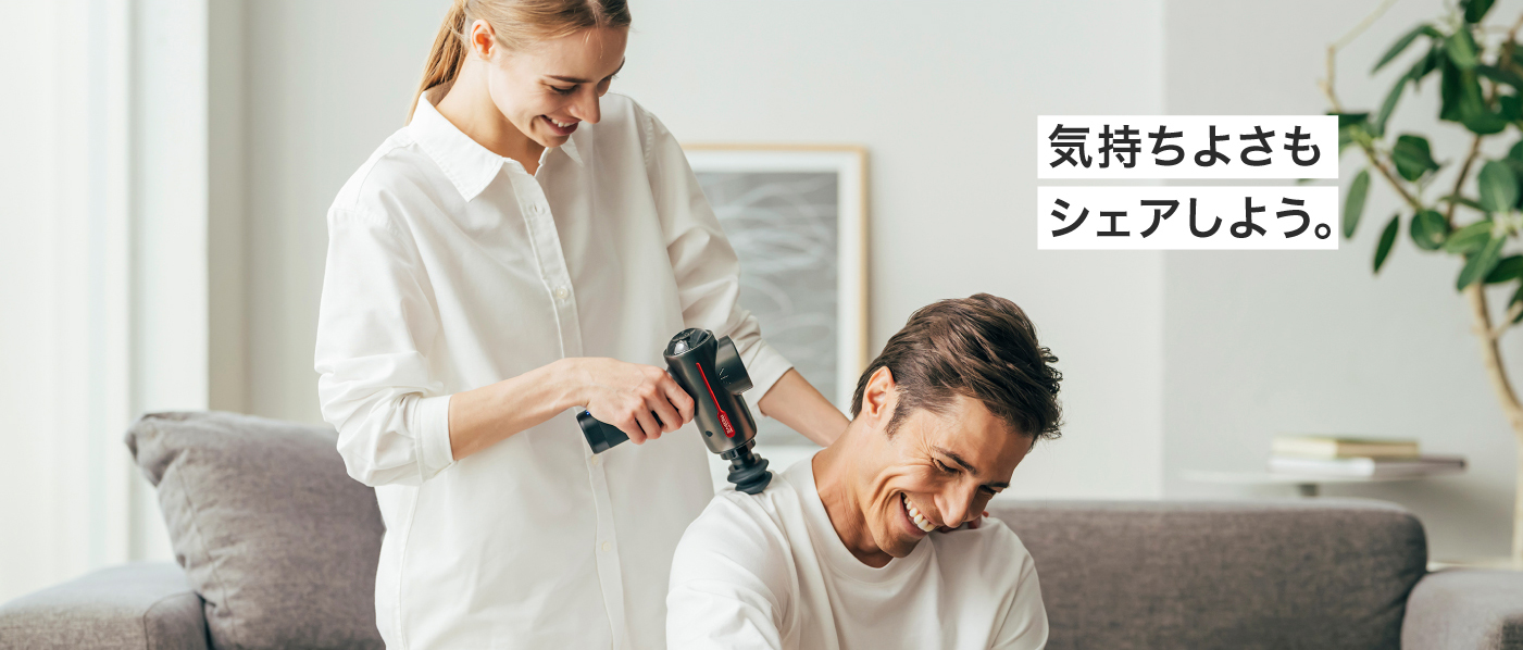 医療機器認証を取得し、リニューアルしたMYTREX REBIVE。ご家庭でも使いやすいコンパクトサイズとパワフル振動。気になる筋肉を奥深くまで刺激しコリや痛みを緩和する、新感覚のマッサージ器です。肩コリや腰痛で悩んでいる。忙しくてマッサージ店に通えない。そんな人にも短時間でコリや痛みの元にアプローチが可能です。