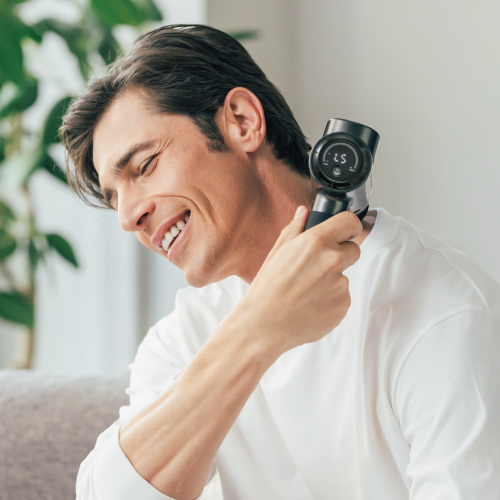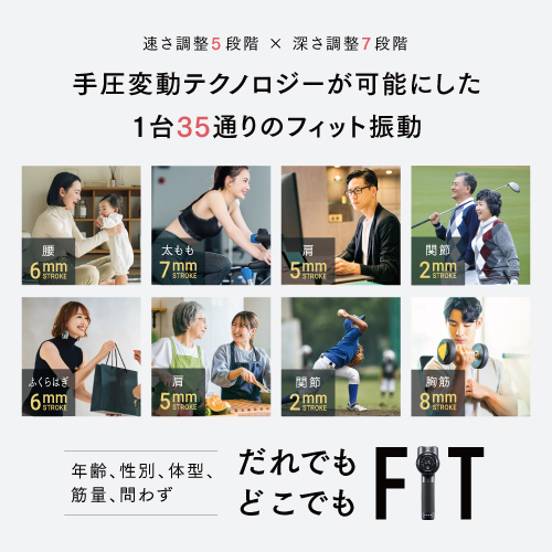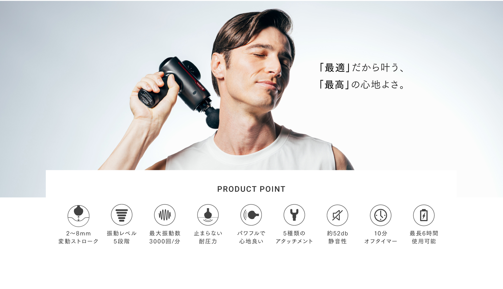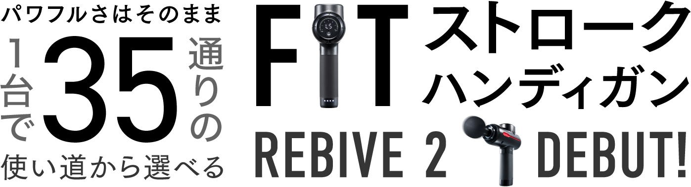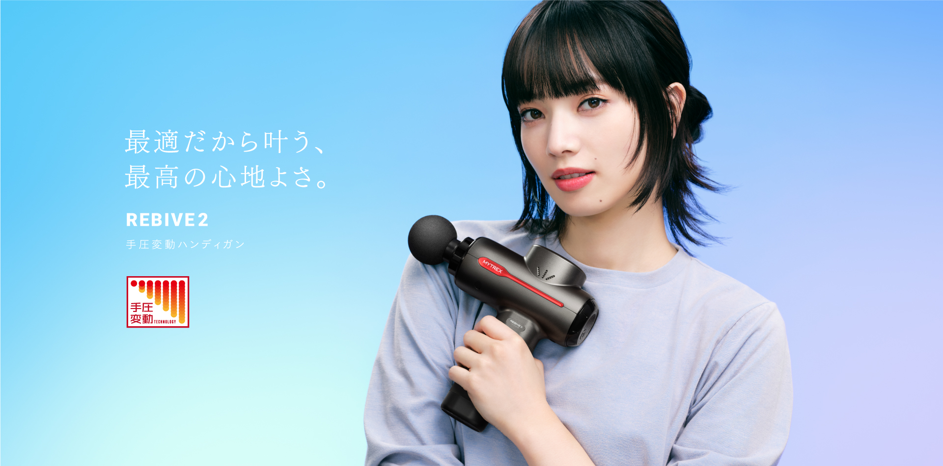 REBIVEシリーズから、深さ(ストローク)と速さ(振動スピード)をコントロールし、首や肩の浅い筋肉から太ももやふくらはぎの深い筋肉まで、的確な振動刺激で心地よいケアが叶う、業界初のハンディガンが誕生。従来のパワフルさはそのままに、だれが使っても、どこに使っても、変わらないフィット感と気持ちよさを。