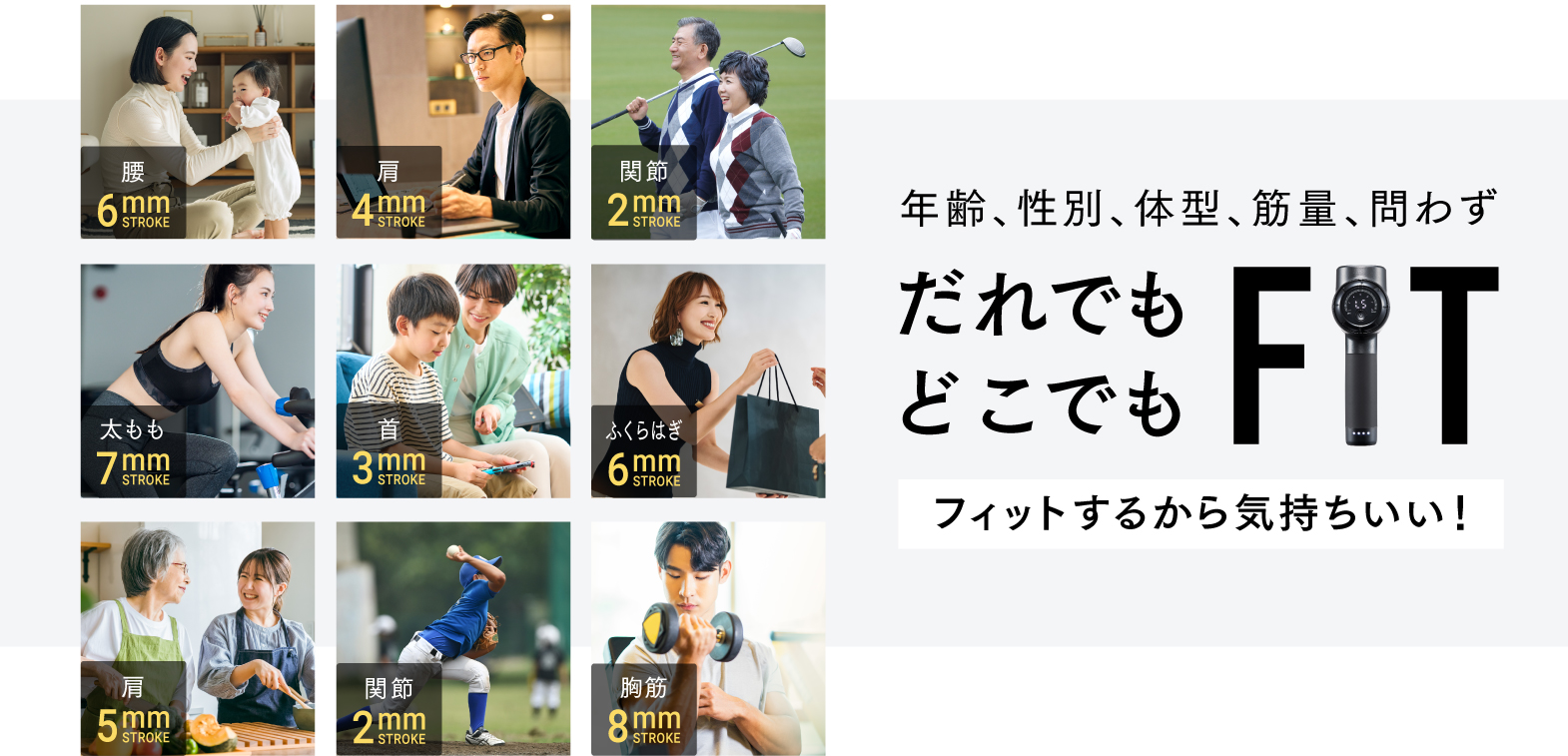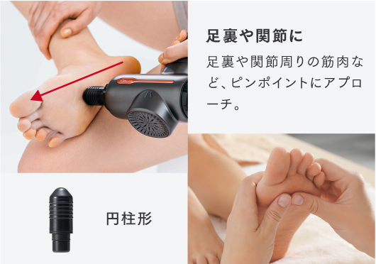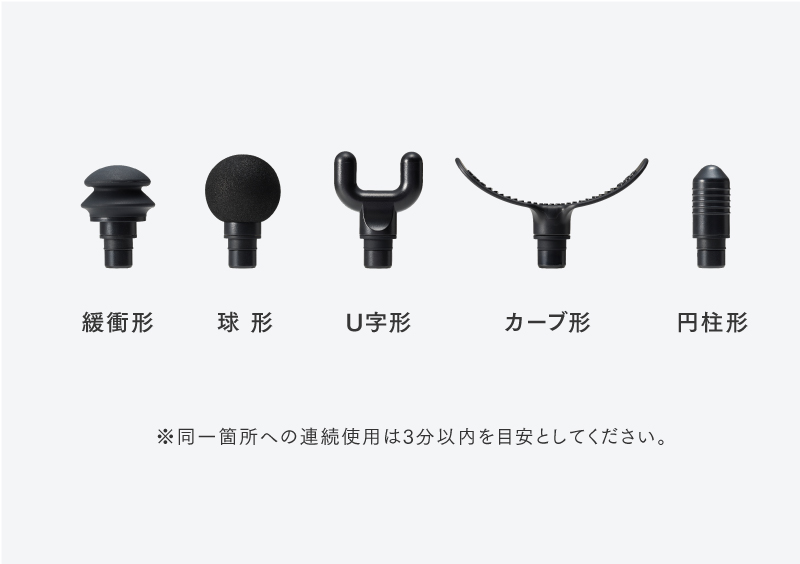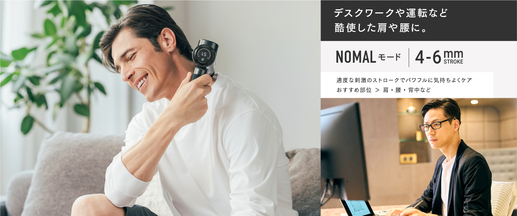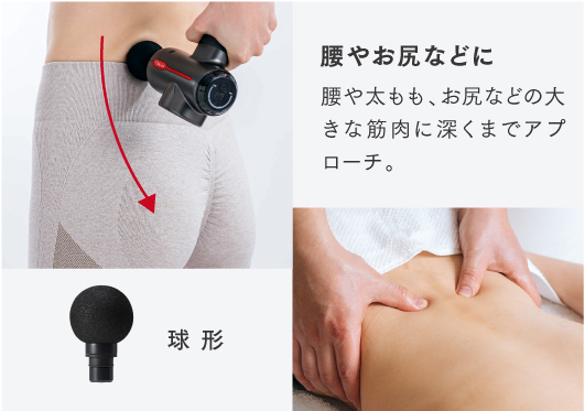 足や腰など大きな筋肉も、深くパワフルに。首や肩など繊細な筋肉も、浅くパワフルにケアします。