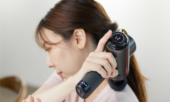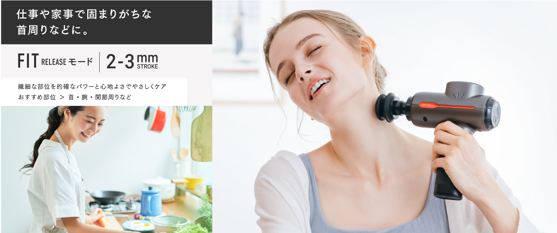 従来のハンディガンでは刺激が強くて使いにくかった首などの繊細な部位にも、2mmストロークなら肌あたりの柔らかい刺激で心地良いケアが可能に。