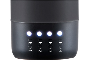 充電が少なくなるとLEDランプが減り、充電が切れそうになるとLED1が点滅しお知らせします。