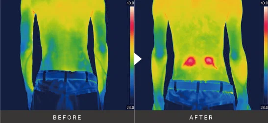 低温・中温・高温の3段階で温度設定が可能。ボタンを押すと素早く加熱を開始し、腰をやさしく温めて、10分でカラダ表面の温度が上昇※。腰まわりからじんわり、くつろぎ気分へ誘います。