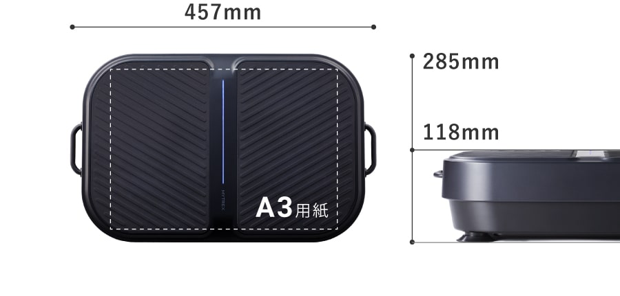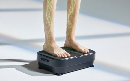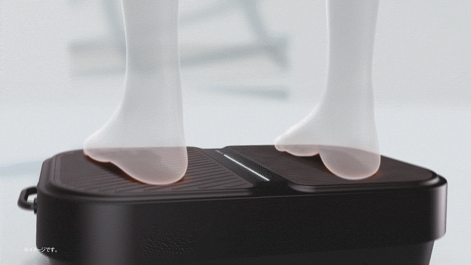 振動マシーンにEMS機能を搭載し、乗るだけで筋肉を動かしている状態を実現。振動のみのマシンより効率的にアプローチします。面積はA3判よりひとまわり大きい程度(幅約46×奥行約29cm)。パワーを実感できる本格的な作りと、使いやすい大きさを両立。充実したエクササイズを叶えます。