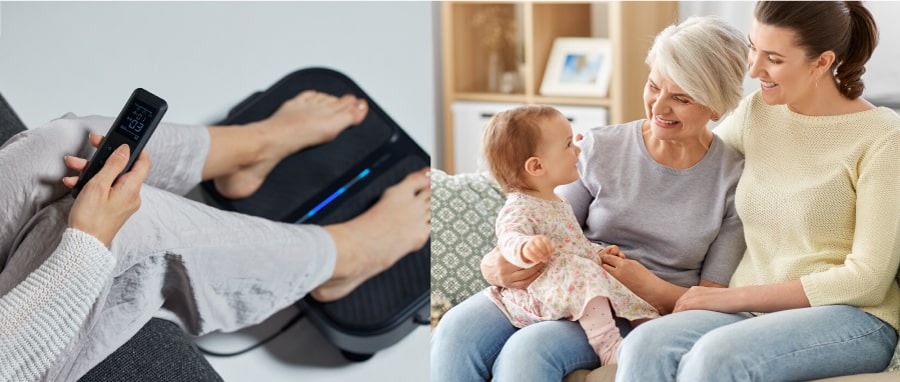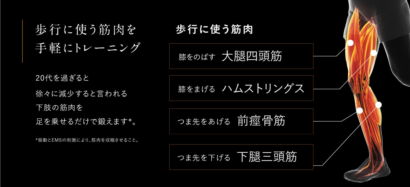 電気刺激と筋肉への効果研究をもとに振動時に効果的に筋肉を収縮させる低周波を採用。5Hz~100Hzの低い周波数×高い周波数でエクササイズのみでは叶わなかった深層筋までアプローチします。