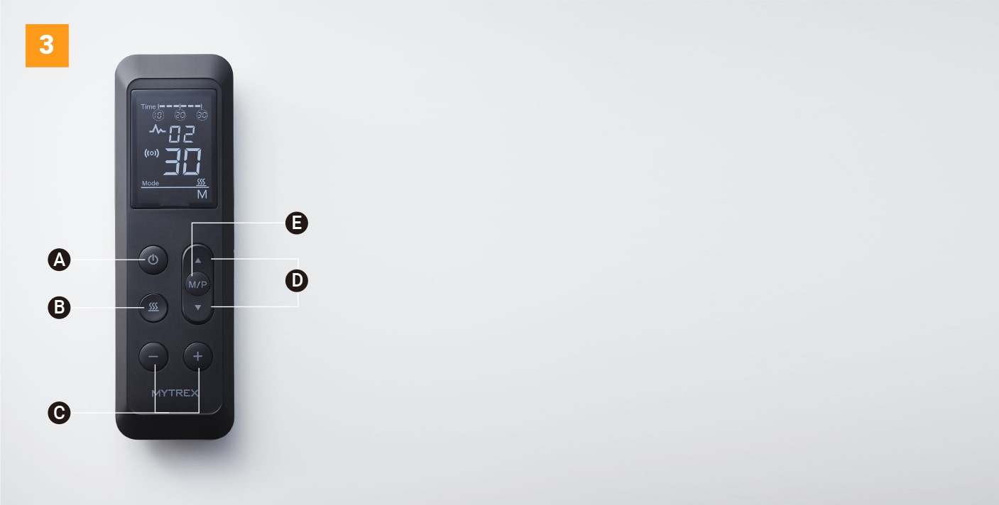 レベル0~20から選択できます。デフォルトはレベル0(刺激なし)です。EMS機能を開始するには(+)ボタンを押します。EMS機能を停止するには、(−)ボタンを長押ししてレベル0を選択します。