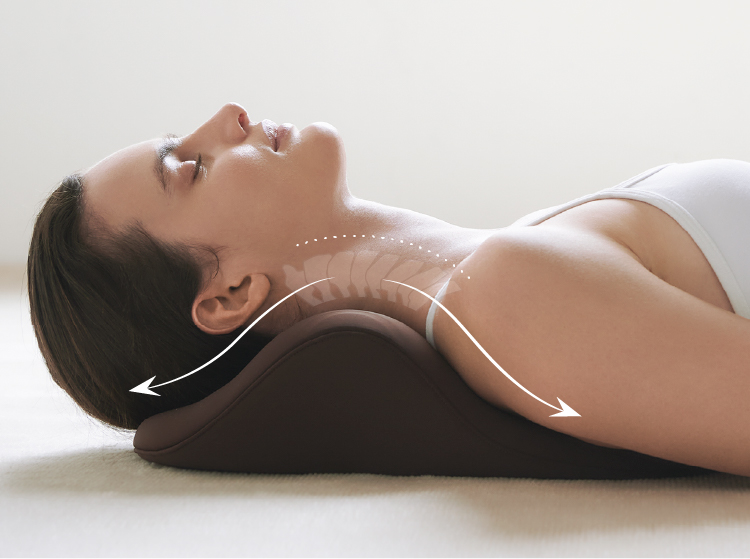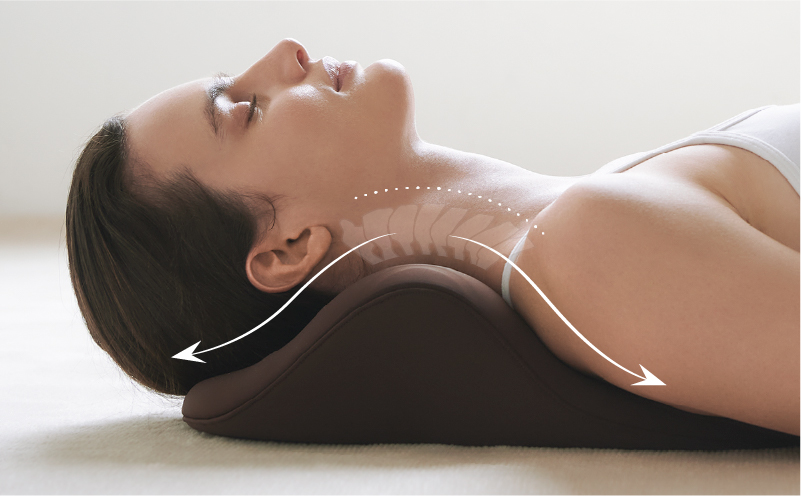 独自に開発した流線型の形状が、首・肩にフィット。頭の重みで自然に首が伸びます。